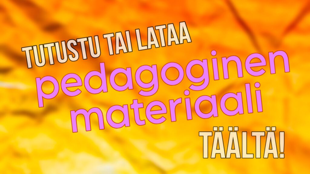 Olemme tuottaneet esitykseen liittyvän pedagogisen materiaalin, joka syventää esitykseen tutustumista ja sen pohtimista yhdessä lasten ja heidän kanssaan toimivien aikuisten kesken! Pääset tutustumaan tai lataamaan materiaalin klikkaamalla alla olevaa kuvaa.